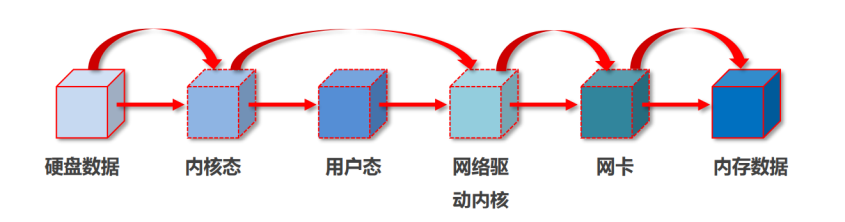 • 数据传输(从磁盘到网卡)由传统4次复制简化为3次复制,跳过了用户态这个环节,使用MappedByteBuffer实现