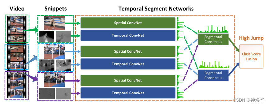 视频相比图片的区别,就是多了一个时序信息(运动信息),如何处理好时序信息,是视频理解的关键。当一个网络无法很好地处理时序信息的时候,可以考虑再加一个网络专门处理时序信息就行。
