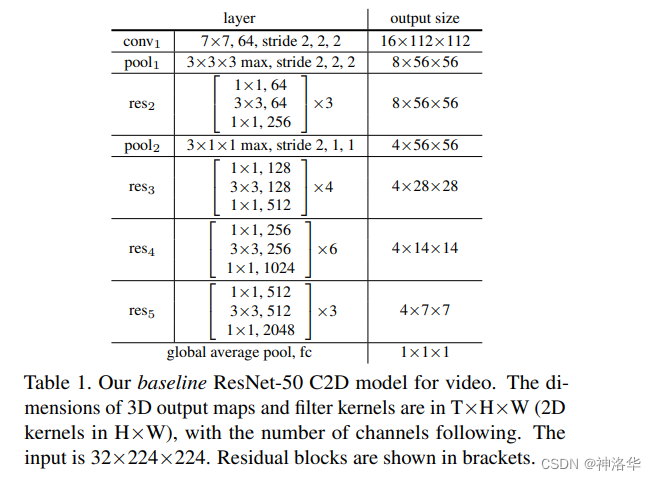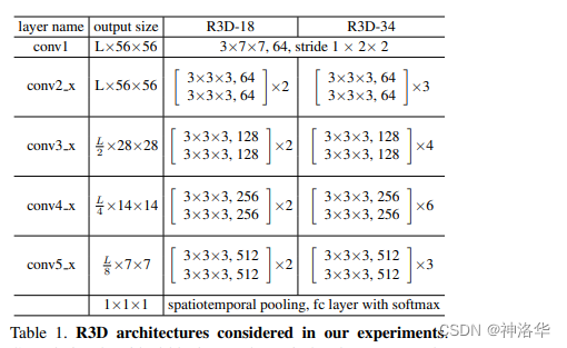R3D:ResNet 版本的I3D,即 backbone 换成 3D ResNet,整体结构如下: