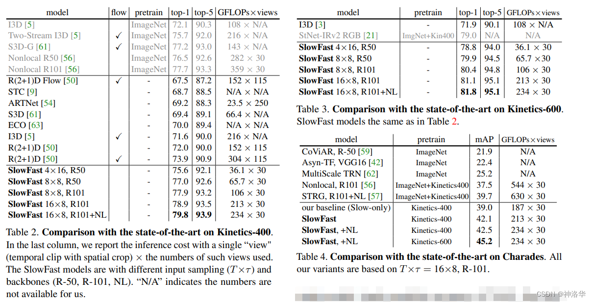 Kinetics-400上的精度达到了79.8%,基本是 3D CNN 中的最好结果。 -