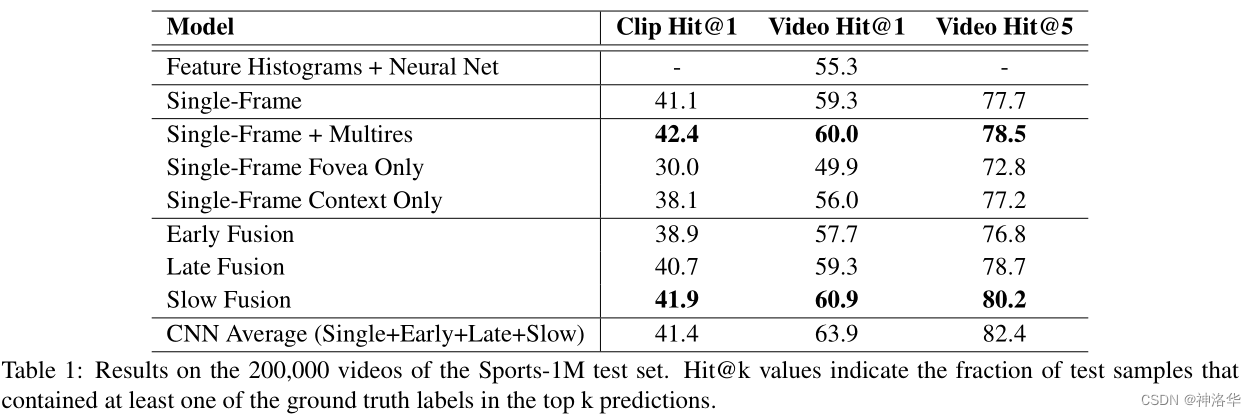 Slow Fusion 就是 DeepVideo 的结果,Single Frame 就是 DeepVideo 论文中的 baseline。