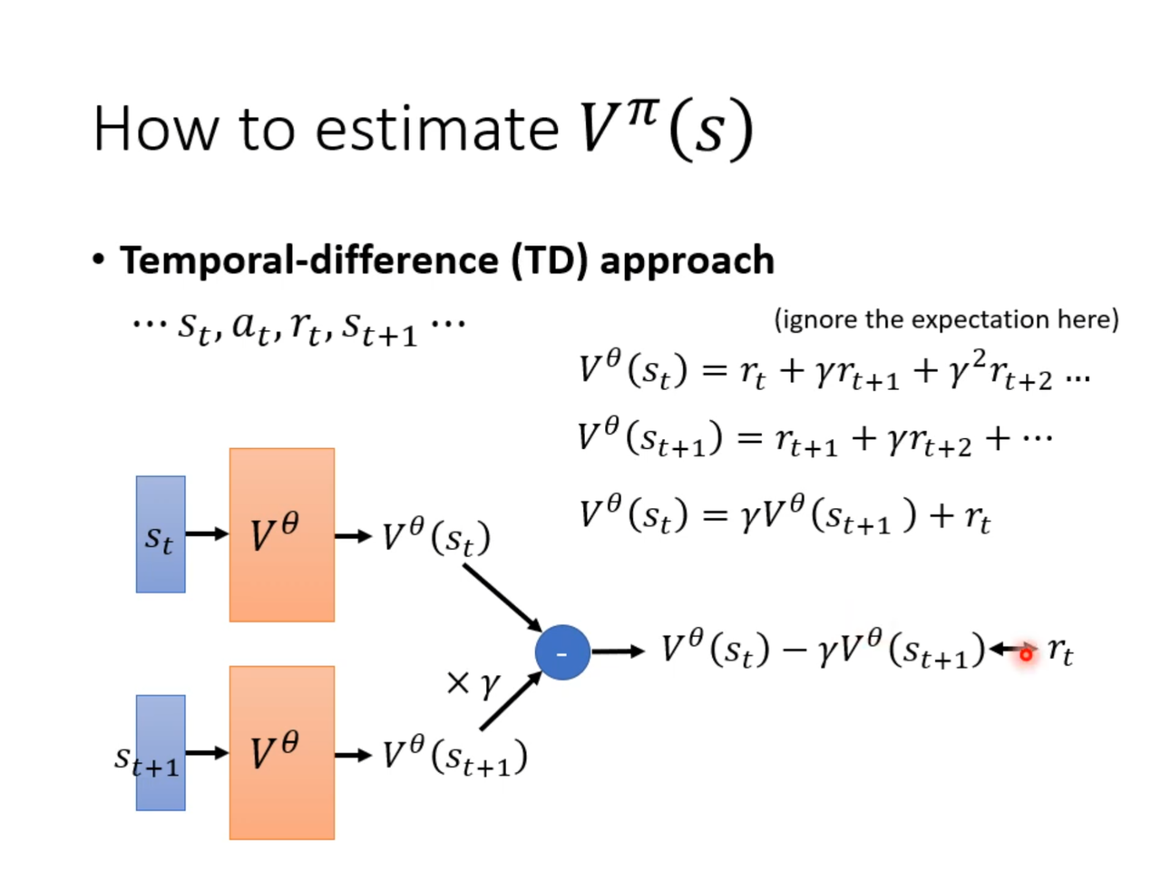TD 残差(Temporal Difference Error)就是对“本周价值估计”和“下周实际得到奖励+下周价值估计”之间的差异做一个衡量。