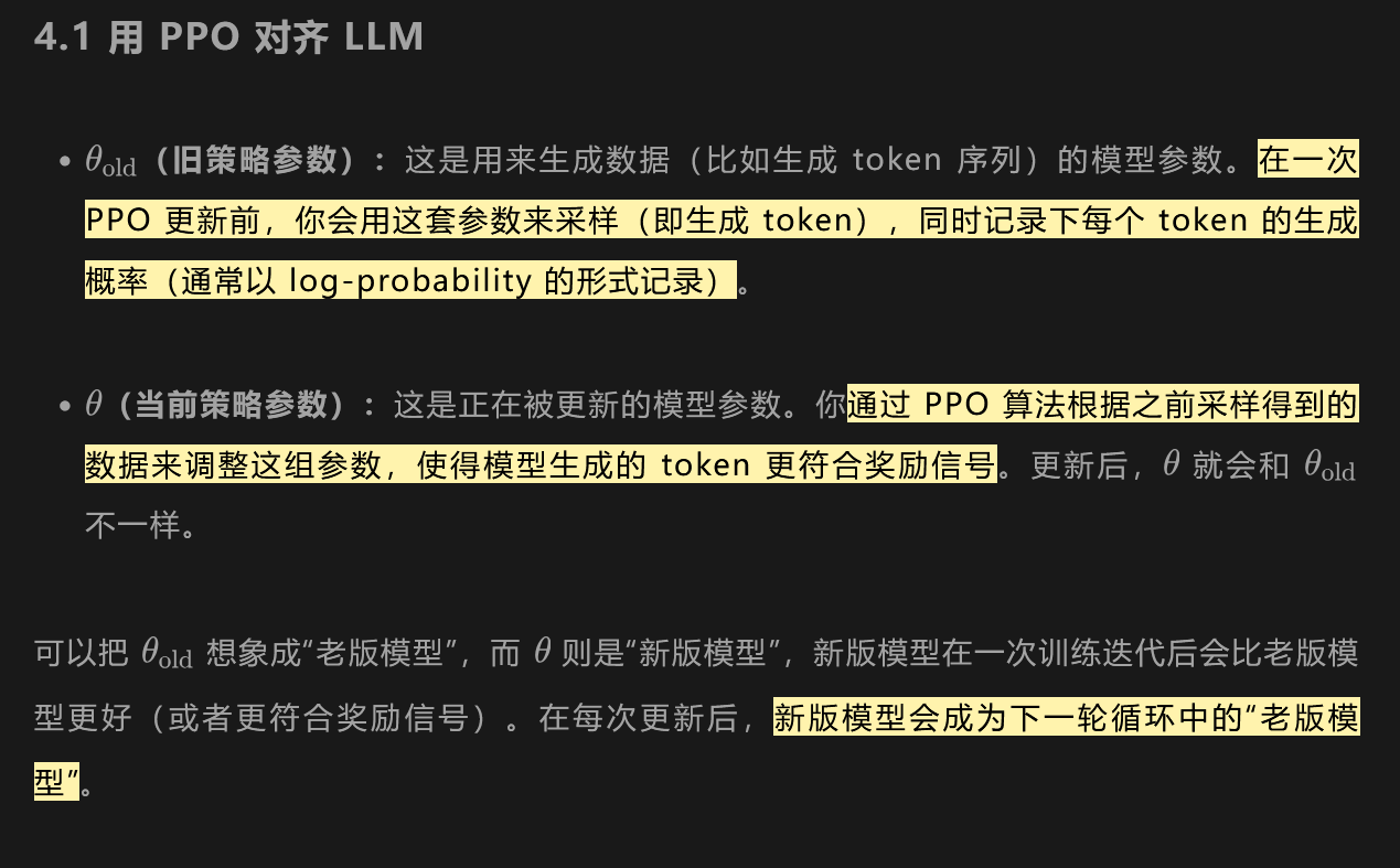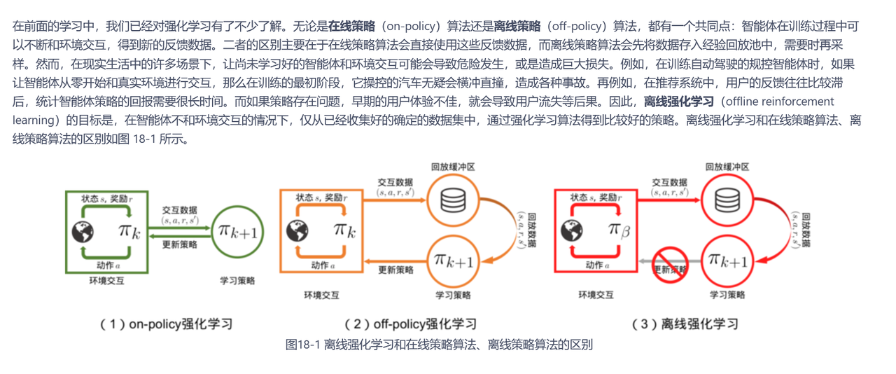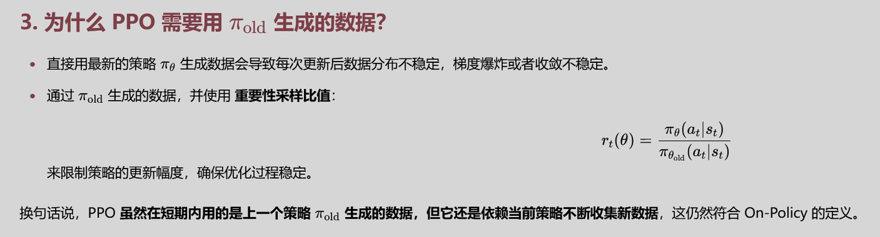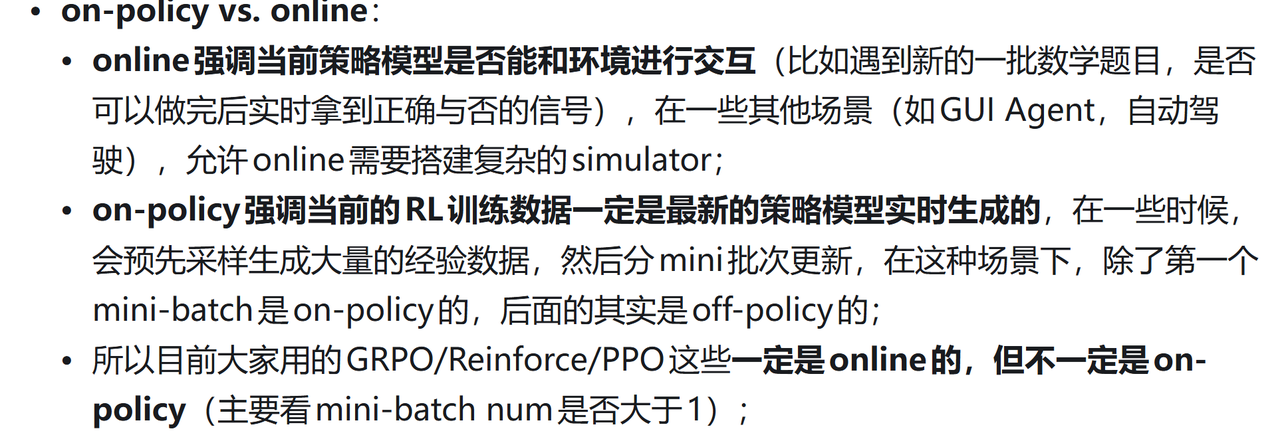 Off-Policy:训练过程中,不需要“在线”生成,更多依赖事先收集到的(或由别的策略产生的)数据进行离线学习。