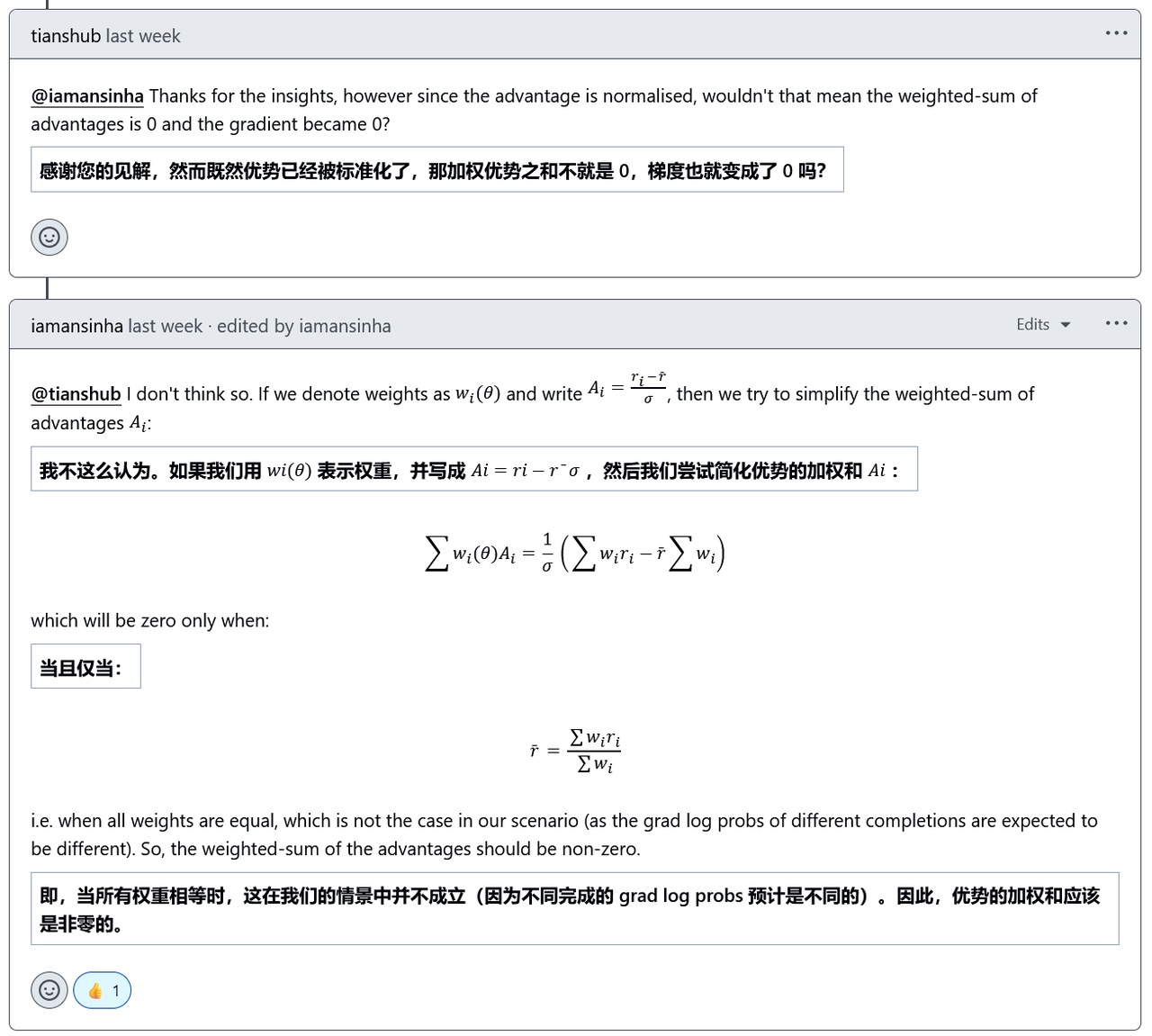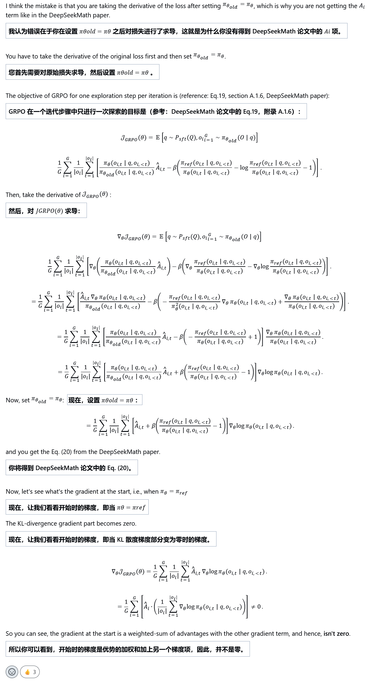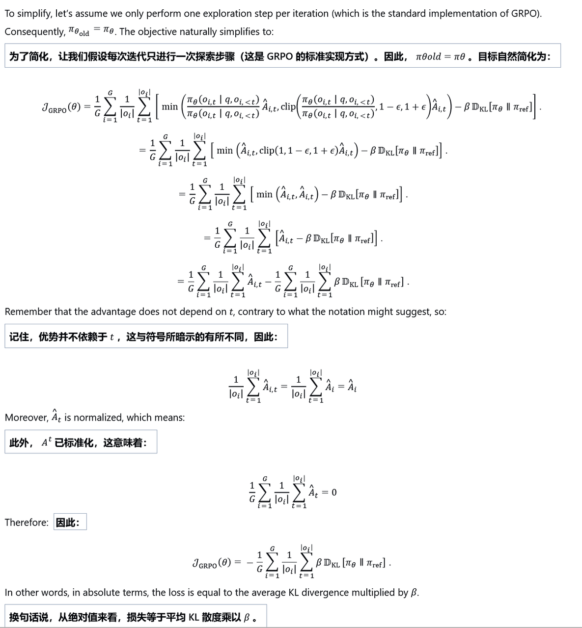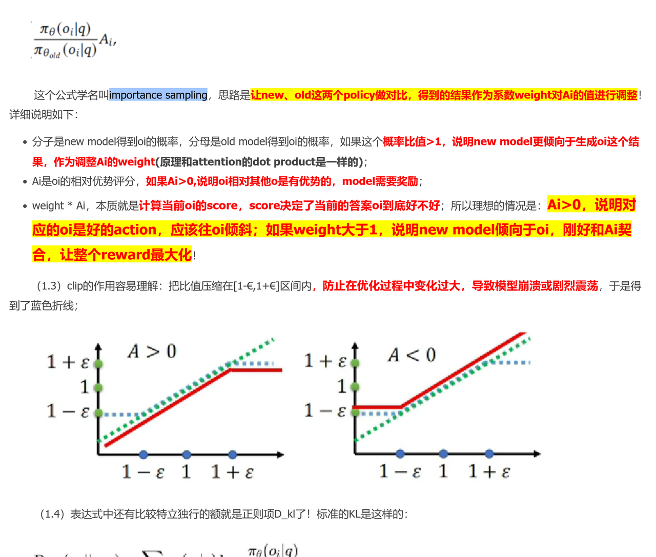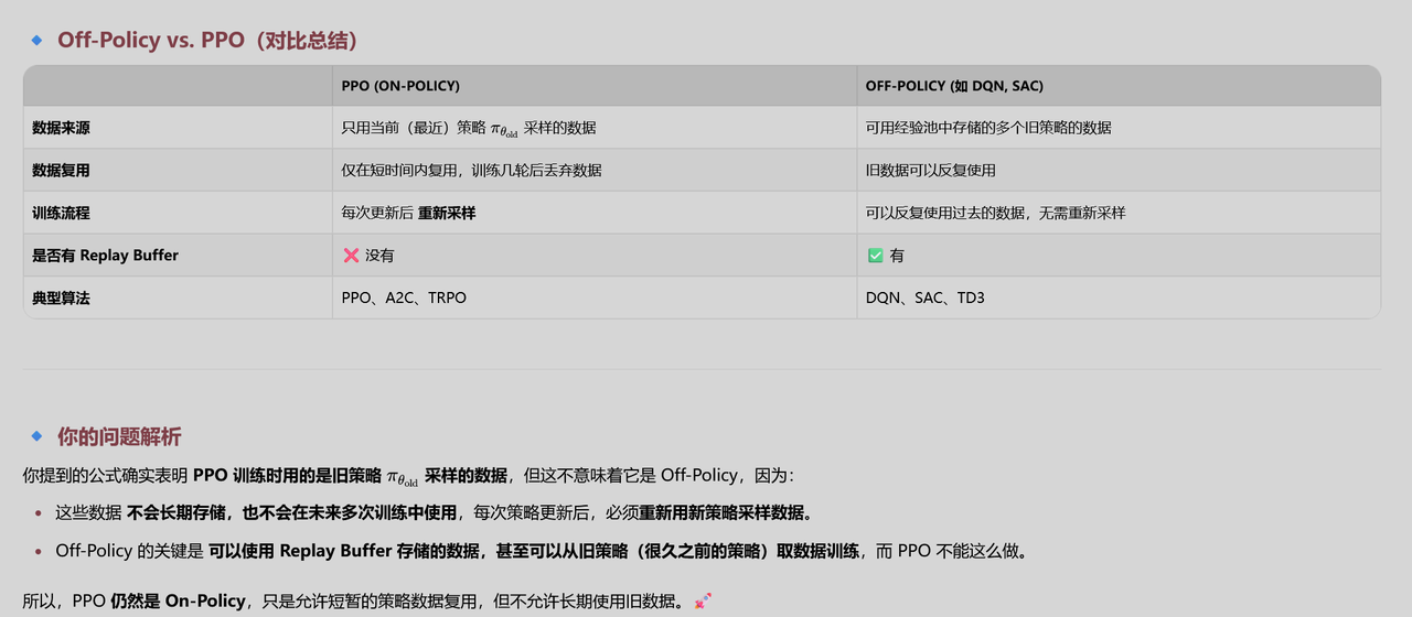 公式属于off-policy,但由于一步更新,退化为on-policy 即GRPO从始至终都是基于重要性采样的on-policy,由于单步更新,导致,即重要性采样系数为1