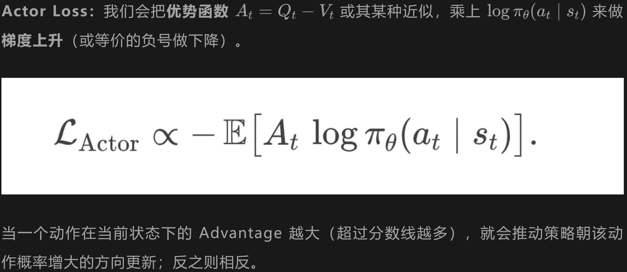 Actor 就是“我大脑里的决策机制”,不断学着如何选动作。