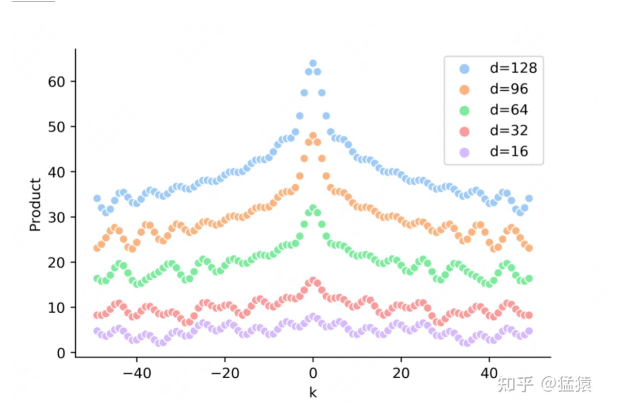 离得越远,attn越低,且呈波纹