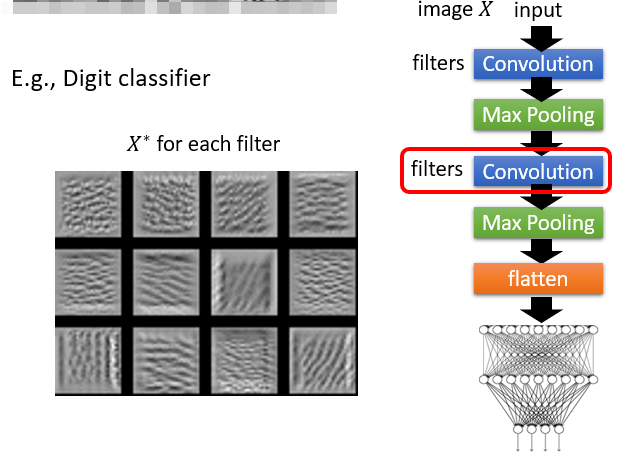 举例来说,假设你今天 Train 好一个,Convolutional 的 Neural Network,Train 好在这边,那你知道在 Convolutional 的,Neural Network 裡面呢,就是有很多的 Filter,有很多的这个 Convolutional Layer